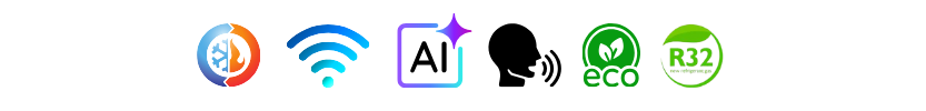 Climatizzatori Wifi con Intelligenza artificiale, gas ecologico R32, controllo Qualità dell' aria. Li puoi comandare sia a voce che a distanza con il cellulare. Potenze per ambienti da 10 a 100 mq.