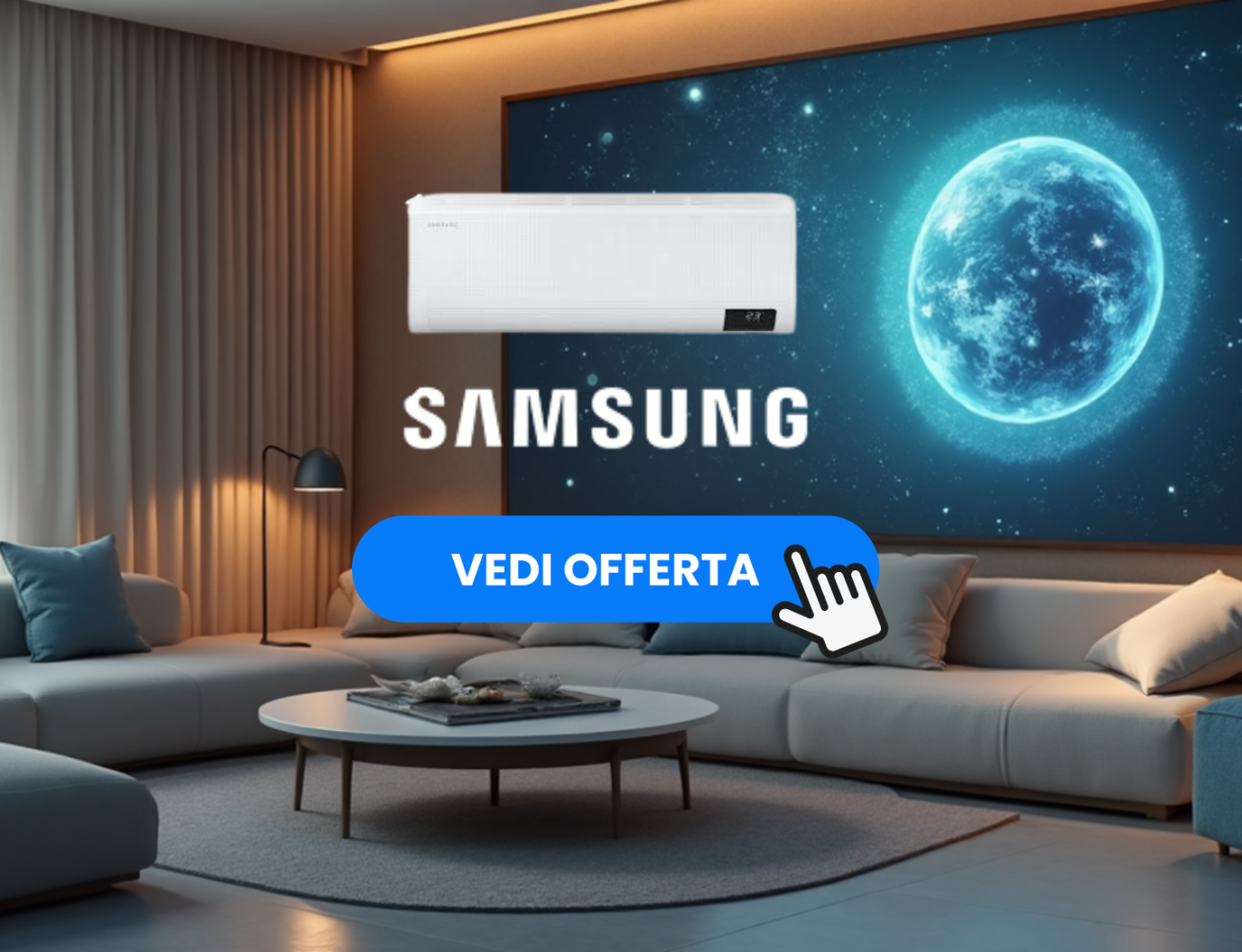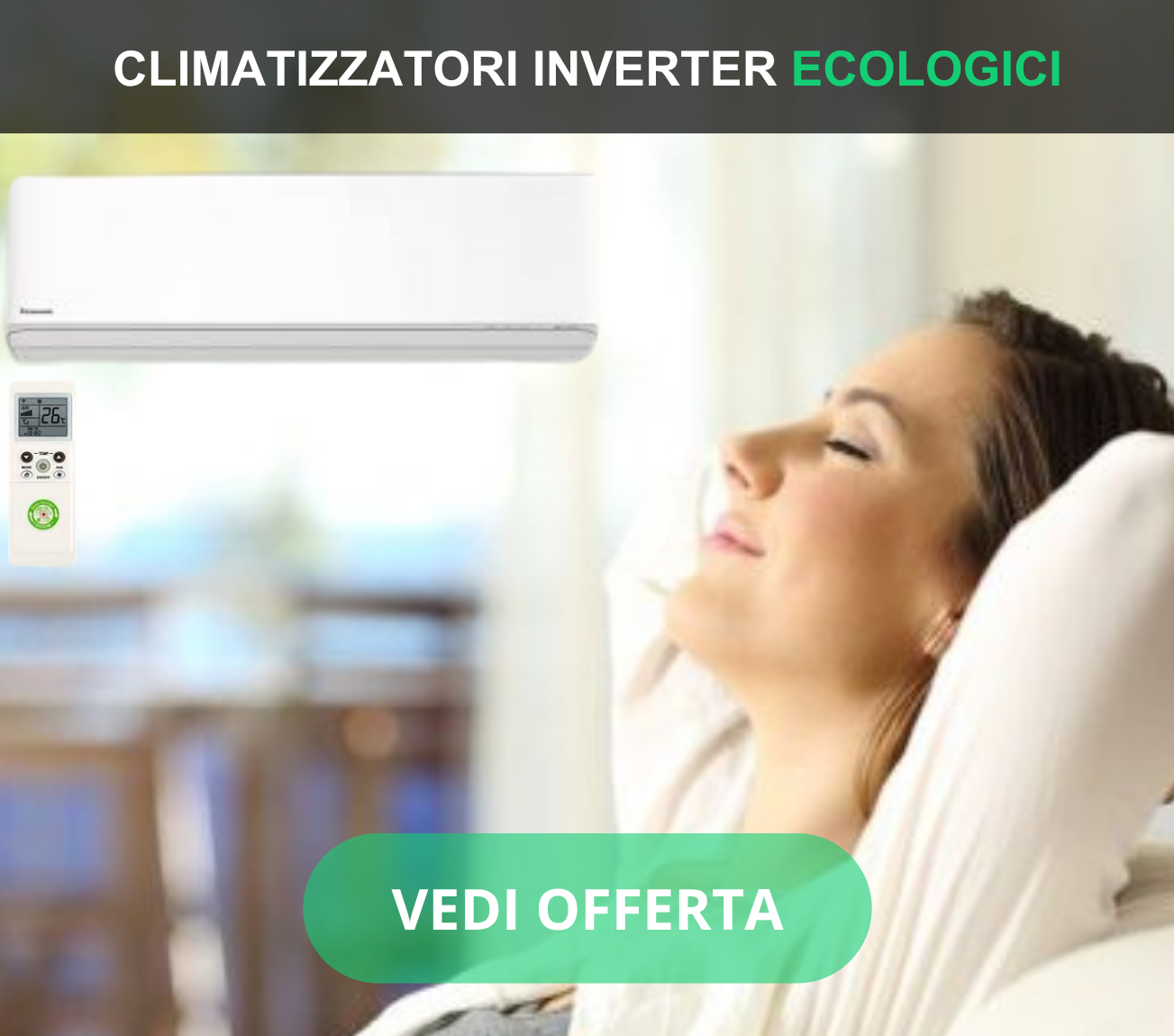 che aspetti a cambiare il tuo vecchio  climatizzatore rumoroso (che contribuisce all' effetto serra) per passare finalmente a un nuovo silenziosissimo climatizzatore wifi, con intelligenza artificiale AI, dotato di sistema autoigienizzante di purificazione dell' aria e di fluido ecologico R32 per lo scambio termico?